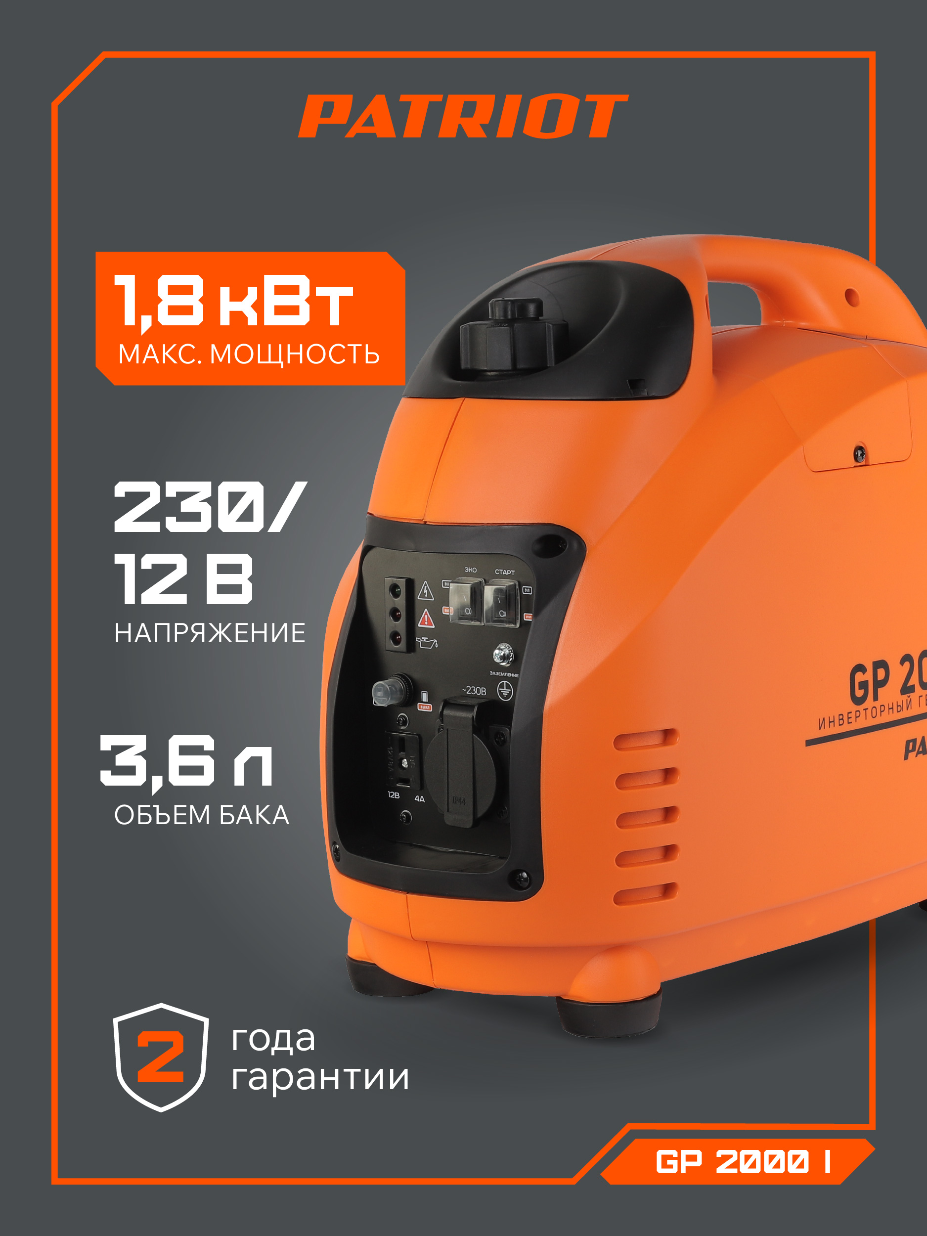 Бензиновый генератор PATRIOT GP 2000 i 474101035: характеристики