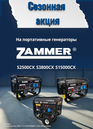 Бензиновый генератор Zammer S2500CX 22 600 20 340